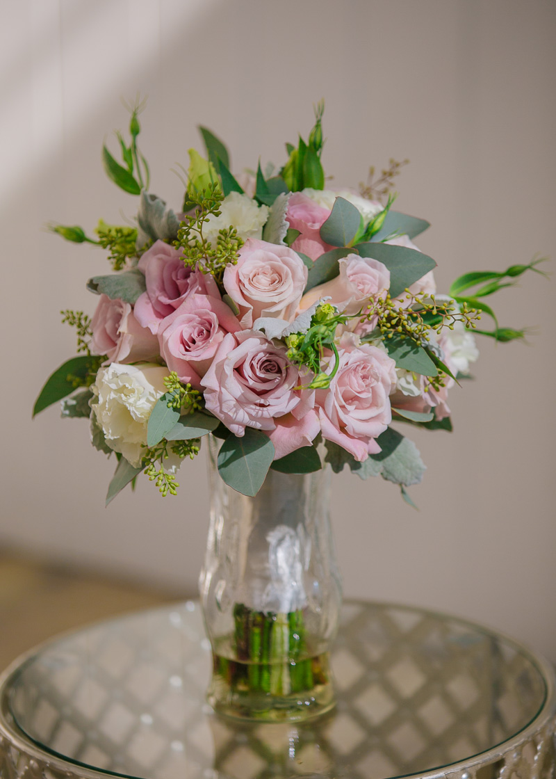 The stunning bride wore the most amazing modern elegant lace sweetheart-neck mermaid gown. Her bridesmaids’ tender white bouquets were the perfect match to their soft pink dresses