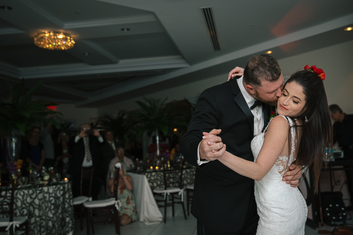 Janna and Juraj were such a sweet couple—it was pretty evident that they loved life, loved their families, and most of all, they loved each other. Janna’s lace gown was so delicate and it matched the beautiful setting of their ocean view wedding perfectly! She wore red shoes to fit her exotic theme and to keep her style vibrant. The bride loves flowers and wanted tons of them, she even chose most gorgeous bridesmaids dresses with a floral print. When entering the reception, instantly, hands shot up to Janna’s face and she cried tears of joy as it had the maximum “wow factor”, it was truly emotional moment. A desert table featured a beautiful and delicious hand painted watercolor cake that was way above everyone expectations. At the reception, guests were treated to cocktail hour overlooking the ocean before dancing the night away under the twinkle lights inside the ballroom. It was a very emotional ocean view wedding full of so much personal touches, joy and happy tears! A true celebration of love!