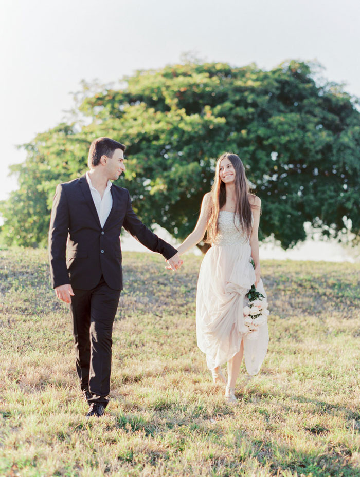 From the simple yet so live green hills that reminded us of Tuscany in some way, to the incredible aerial feeling of freedom this park always leaves us in awe and that’s why we chose it. We wanted to take a classic idea and give it a modern fresh take incorporating what was very important to us as a couple. I dreamed about something earthy hued, with a soft golden-pastel colors that will bring an element of elegance which contrasts nicely with the olive wood setting, perfect pair of vintage chairs and table with floral touch that would remind us of vintage Italy, and nature we love so much.We hand selected the table top items some from our favorite stores and some from the trip to Italy to create specific and customized Italian vintage theme look. I chose simple and delicate dress I wanted to be pure and flawless and a perfect match for our engagement session theme.We want to thank Los Angeles Wedding Photographer – Wedding Nature Photography for the fabulous photography they did for us, for the flower arrangements.